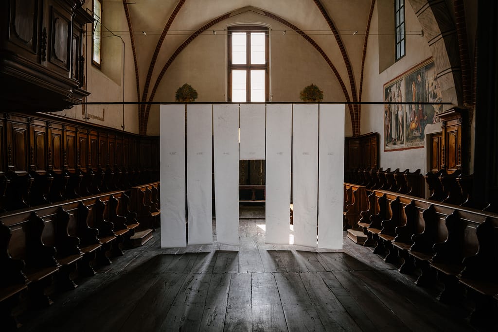 Atlas Abda is the title of the solo exhibition by Andrea Mariconti (Lodi, 1978), a multi-disciplinary project curated by Alessandro Beltrami and Paolo Torre, promoted by the Municipality of Lodi and the Province of Lodi, with the collaboration of Asst Lodi, Pro Loco, and the Museo della Stampa, and the support of Animula Design and Federico Rui Arte Contemporanea. The exhibition will feature monumental sites and little-known historical spaces in the city. A series of the artist’s recent works, sculptures and paintings, including some site-specific pieces, animate and reinterpret the Baroque spaces of the Biblioteca Laudense, the rooms of the “Paolo Gorini” anatomical collection (famous for the anatomical preparations produced by the scientist between 1842 and 1881) and the Ospedale Maggiore, the Rococo church and the 15th-century choir of Santa Chiara Nuova, the Renaissance Cloister of San Cristoforo, and the Museo della Stampa. The underground space of the Hall of Columns of the former monastery of San Domenico is reinterpreted through images and sound.